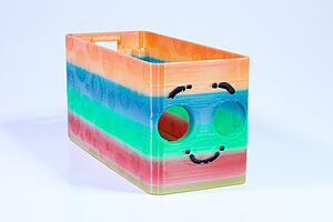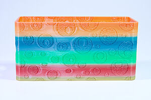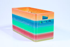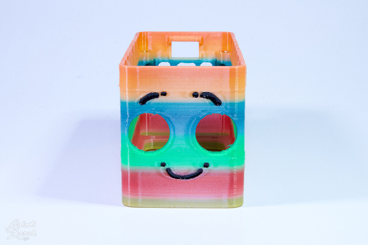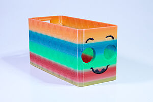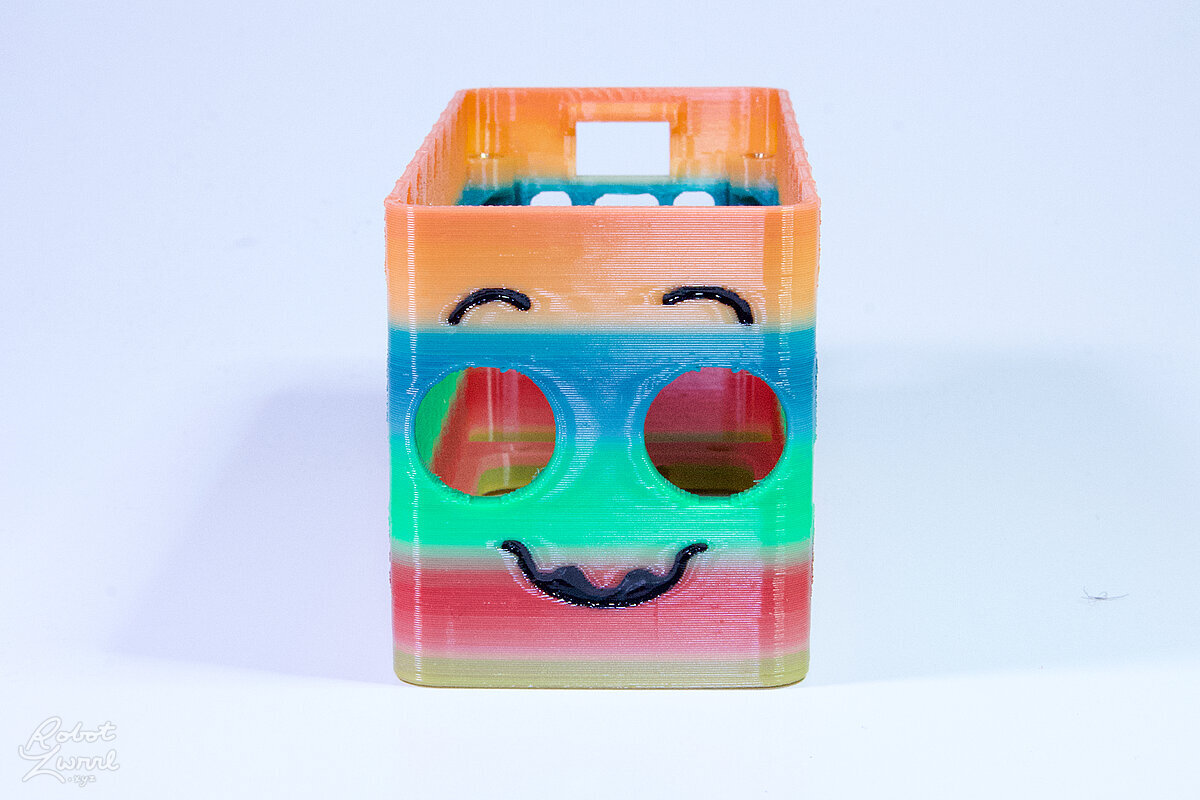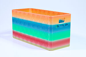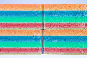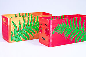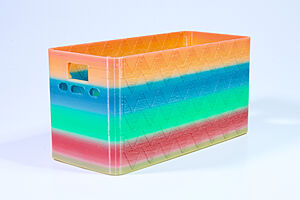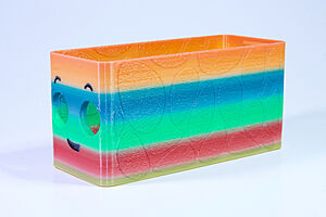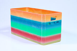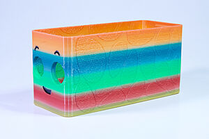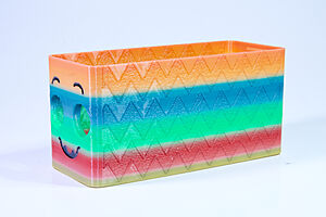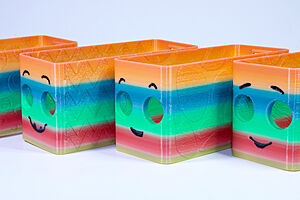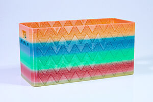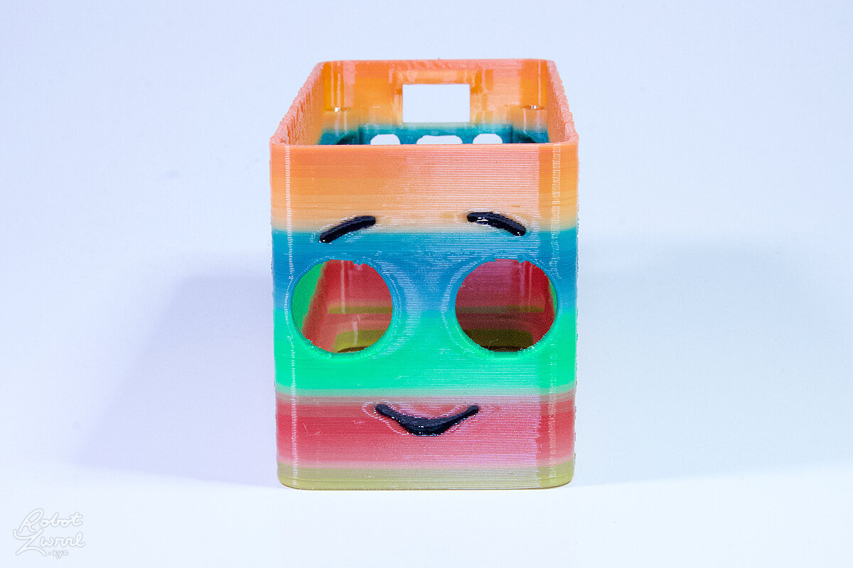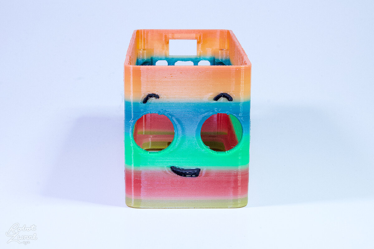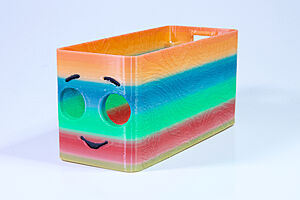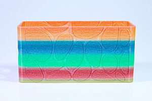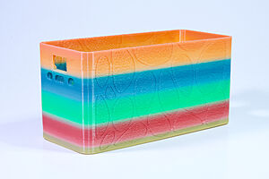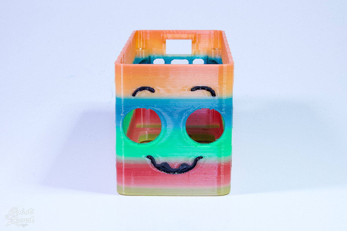 To celebrate the bat wing design, here's a special customized bat enclosure design! Printed in a purple filament with sparkles and glow in the dark. Over the winter holiday break a few other enclosure designs were printed. Including a duo-tone gold and magenta with a green fern splash on the side. As well as a set of four gradient colour change with patterned 'fuzzy skin' designs imprinted on the sides. Fun fact, the fuzzy skin enclosure with the voronoi pattern is the same that was used on Bowie the robot's base tiles! - 5 Jan 2026